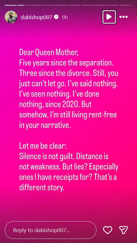 “Let me be clear, silence is not guilt. Distance is not weakness. But lies? Especially ones I have receipts for? That’s a different story,” he continued.
