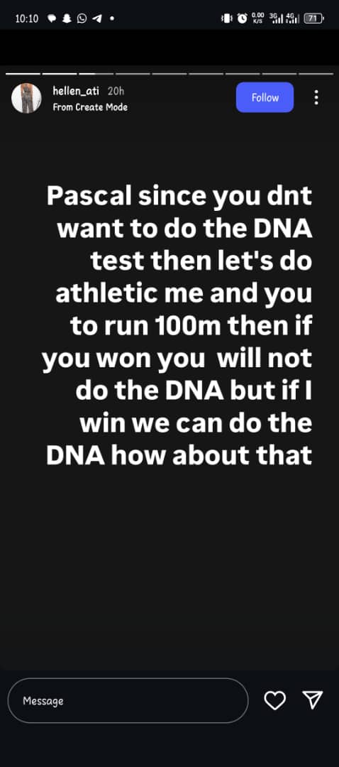 “Pascal, since you don’t want to do the DNA test, then let’s do an athletic. You and I will run 100m.