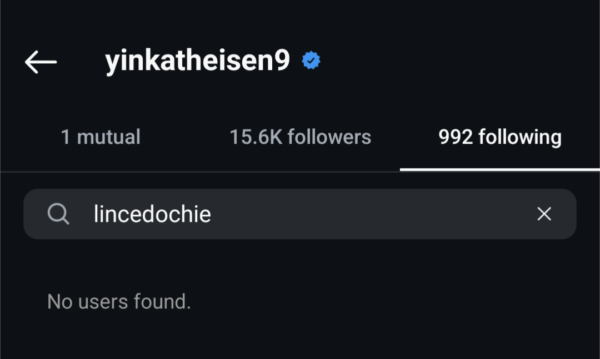 Checks by TheCable Lifestyle revealed that Linc and Yinka have unfollowed each other on Instagram, suggesting escalating tensions in their marriage.