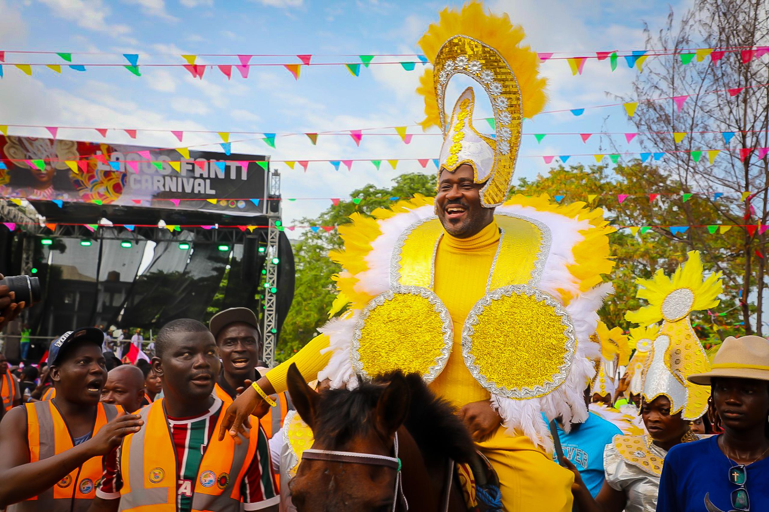 PHOTOS: Desmond Elliot makes grand entry on horseback at Lagos Fanti Carnival#LagosFantiCarnival pic.twitter.com/tOD9Xqzwsc
